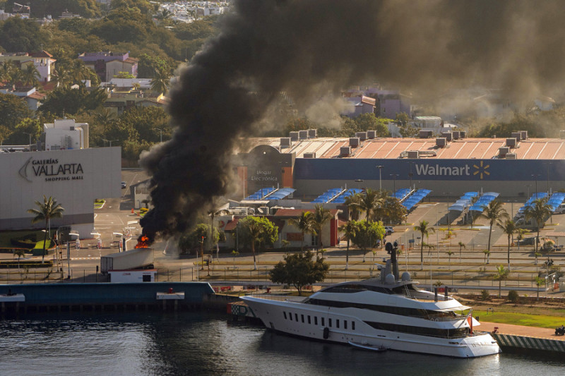 FOTODELDÍA MEX5107. PUERTO VALLARTA (MÉXICO), 22/02/2026.- Fotografía aérea donde se ve camión incendiándose tras reacciones violentas por el abatimiento de Nemesio Rubén Oseguera Cervantes, alias 'El Mencho', líder del Cártel Jalisco Nueva Generación (CJNG) este domingo, en Puerto Vallarta (México). El abatimiento de alias El Mencho desató una ola de violencia y bloqueos carreteros en México. EFE/ Gerardo SantillánEl Gobierno del presidente Donald Trump confirmó este domingo que Estados Unidos brindó apoyo de inteligencia al gobierno mexicano para desarrollar el operativo en el que se dio de baja a Rubén Nemesio Oseguera Cervantes, alias El Mencho, líder del Cartel Jalisco Nueva Generación (CJNG).